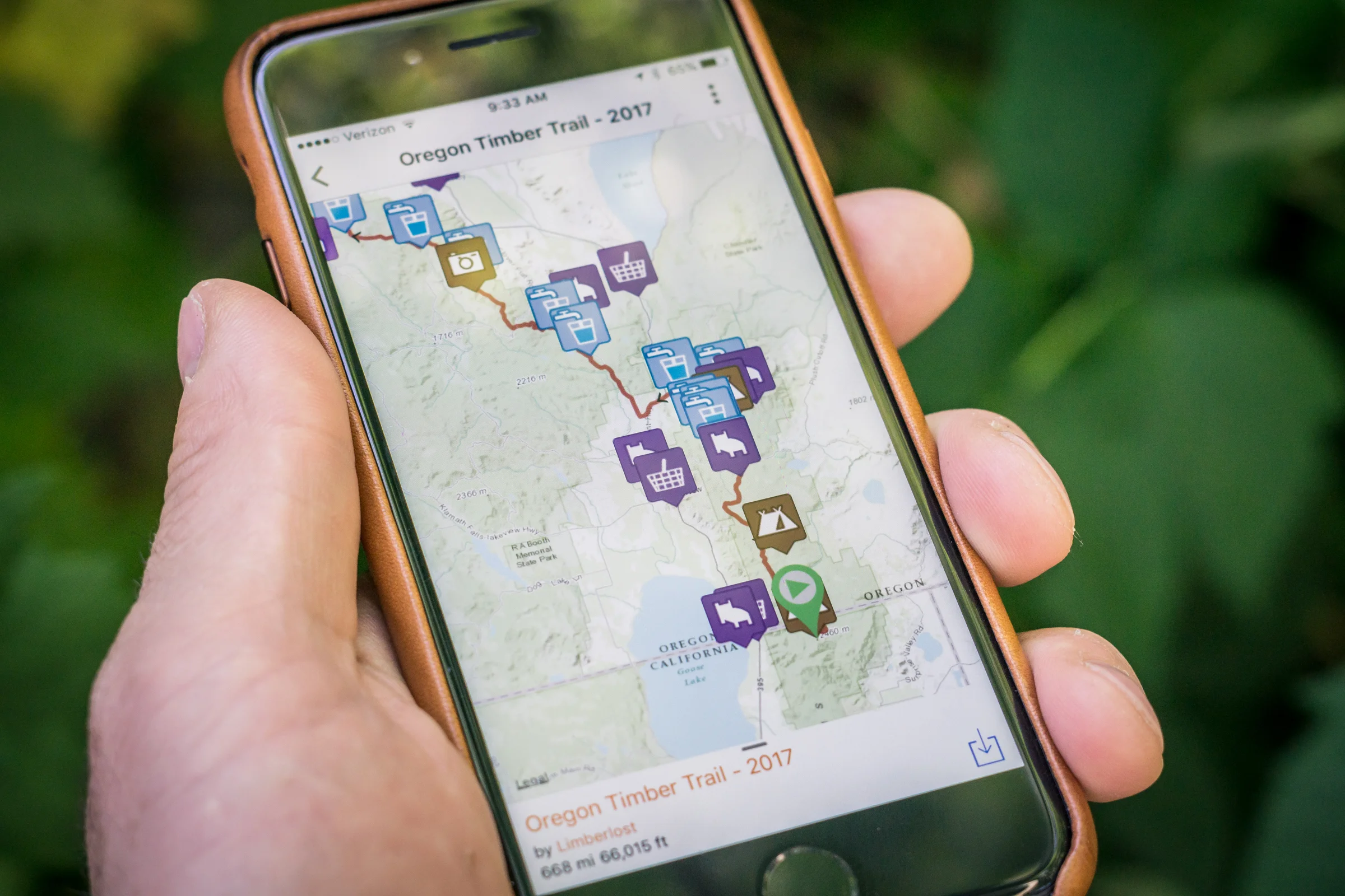 The GPS tracks are your primary tools for navigation. The majority of the route has no cellular service, and having a navigation system that works offline is mandatory. The alignment of the Oregon Timber Trail is fluid and may change slightly year-to-year as barriers, or better alignments arise. You’ll need to download the most current version from OregonTimberTrail.org. In order to use the GPS track you’ll need to upload it to a GPS device like a Garmin or a smartphone app. There’s typically a bit of a learning curve with this process and we suggest getting comfortable with the interfaces before venturing out on the Oregon Timber Trail. Having paper maps or detailed topographical map files downloaded to your GPS device as a backup is highly recommended.
